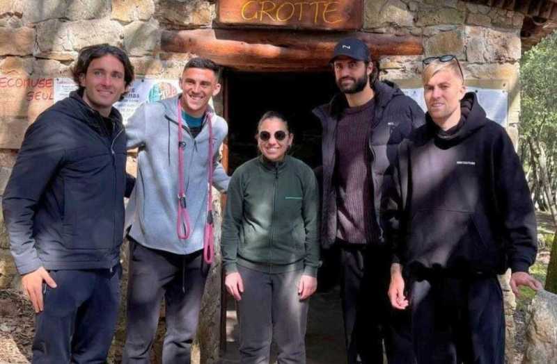 SEULO. Tappa in Barbagia per i calciatori del Cagliari Zappa, Luperto, Augello e Felici. I rossoblù stamattina erano a Seulo dove hanno visitato le grotte Domus de Janas e le cascate di "Su stampu 'e su turrunu" accompagnati dalle guide dell'Ecomuseo dell'Alto Flumendosa.