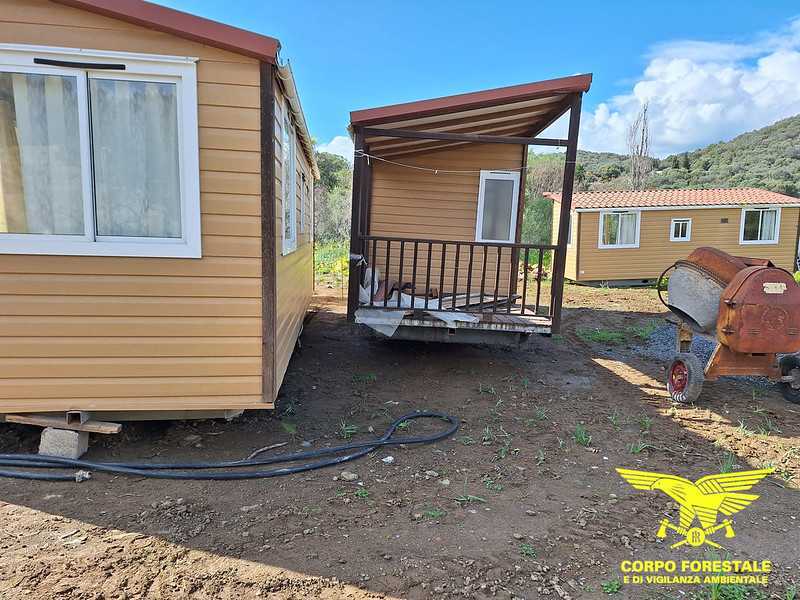 I forestali nel corso del controllo hanno accertato il posizionamento, su un terreno agricolo, di quattro prefabbricati dotati di impianti tecnologici permanenti, installati dopo interventi di sbancamento e livellamento del terreno.