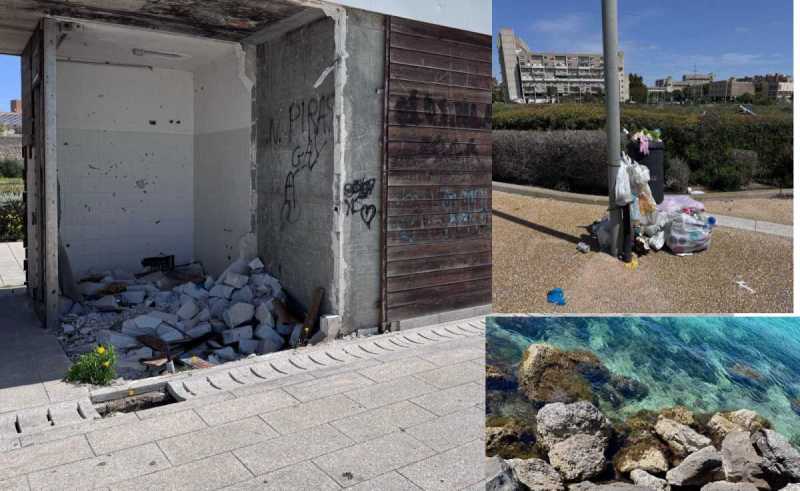"La situazione ormai è degenerata, con un abbandono sempre più evidente da parte dell’amministrazione comunale e un conseguente degrado che rischia di compromettere la qualità della vita dei residenti e l'immagine stessa della città. Buona parte dell’illuminazione pubblica sia i lampioni che l’impianto luci che costeggia il sentiero ciclopedonale, gli arredi urbani, alcuni tratti di pavimentazione e i chioschi sono ormai danneggiati e vandalizzati dai soliti ignoti. In particolare queste strutture che vennero inaugurate nel 2014, ad oggi risultano abbandonate e alcune parti sono state sradicate e buttate in mare idem per alcuni arredi urbani in granito (documentazione fotografica). Il verde pubblico è completamente abbandonato in quanto sono tantissimi gli alberi e gli arbusti secchi e in diverse parti l’impianto di irrigazione è danneggiato (come da documentazione fotografica)", aggiunge.
