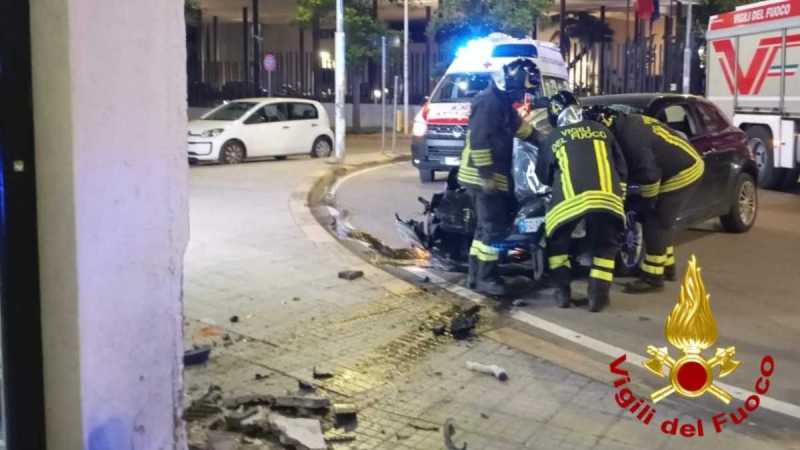 SASSARI. Intorno alle 4,30 di stamattina i vigili del fuoco, sono intervenuti nella piazza Conte di Moriana, a Sassari, per un incidente stradale. Il conducente di una vettura, per cause da accertare, mentre affrontava la rotatoria, sarebbe andato a sbattere sulla vetrina di un negozio.