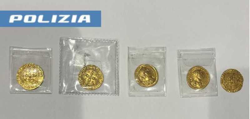 Da una verifica più approfondita, si è appurato che tra gli oggetti interessati vi erano delle monete che sono apparse di interesse archeologico/culturale. Intervistati in merito alle ragioni del possesso di tali monete in siffatto contesto, entrambi hanno evasivamente riferito di essere dei semplici collezionisti ed appassionati di numismatica. Nelle more dell’espletamento degli atti di polizia giudiziaria, in collaborazione con i militari del locale nucleo tutela del patrimonio culturale dell’arma dei carabinieri sono stati effettuati ulteriori accertamenti che hanno portato al rinvenimento di cinque monete d’oro, trentadue d’argento e quattro di bronzo.