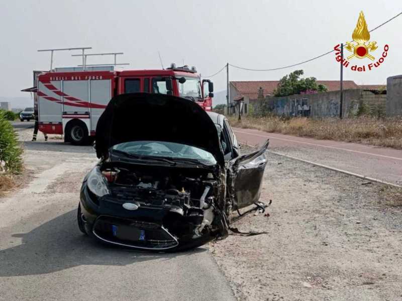 Al lavoro una squadra del distaccamento di Carbonia che ha messo in sicurezza i veicoli e la sede stradale.