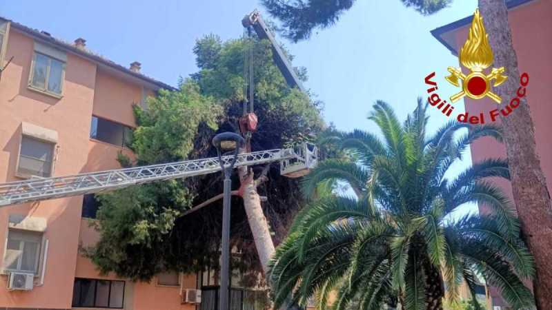 ASSEMINI. cade un albero e finisce contro una palazzina di quattro piani: è successo ad Assemini dove sono dovuti intervenire i vigili del fuoco di Cagliari.