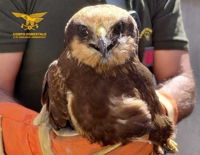 CAGLIARI. Nel pomeriggio del 6 settembre scorso, una pattuglia della stazione forestale di Villaurbana, durante un servizio ordinario di vigilanza del territorio, è intervenuta nel centro abitato del comune di Siapiccia per il recupero di un esemplare di Falco di Palude (Circus aeruginosus, Linnaeus 1758), notato in evidente difficoltà da alcuni cittadini nella piazza principale del paese.