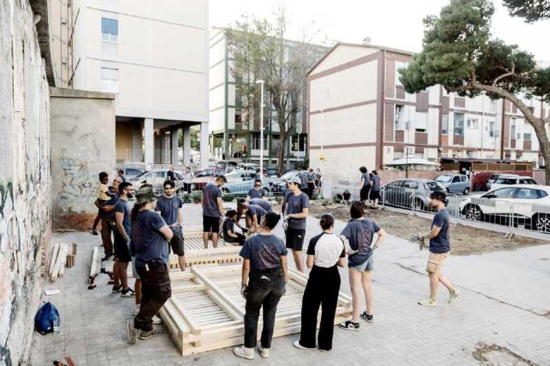 In questi giorni, le giovani collaboratrici e i giovani collaboratori stanno lavorando nella piazza senza nome di fronte alla ex scuola popolare nel nucleo Sacripanti, per realizzare l’installazione pubblica.