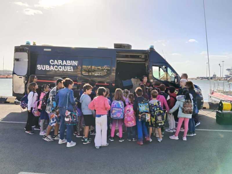 CAGLIARI. Mattinata entusiasmante per i circa sessanta alunni delle classi terze e quarte dell’Istituto comprensivo “Satta-Spano-De Amicis” di Cagliari, che oggi hanno preso parte a una visita d’istruzione presso il porto di Cagliari dove ad accoglierli hanno trovato il Nucleo subacquei dei carabinieri e la motovedetta CC815. L’iniziativa si inserisce nel più ampio progetto dell’Arma dedicato alla diffusione della cultura della legalità e alla conoscenza dei compiti istituzionali dei carabinieri tra le giovani generazioni.
