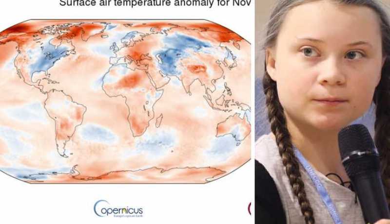 I dati del Copernicus sono stati twittati da Greta Thunberg, che nel suo post riferisce la valutazione Ue per diverse aree del globo: "estremamente mite" il clima in Alaska, Groenlandia e Siberia orientale e "caldo" nell'Europa sud-orientale.