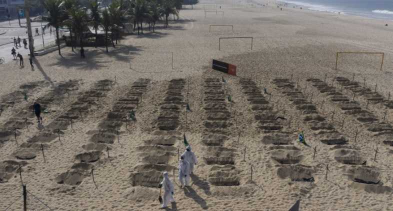 Nei giorni scorsi per protesta sono state realizzare 100 finte tombe con altrettante croci nere sulla spiaggia di Copacabana, a Rio.