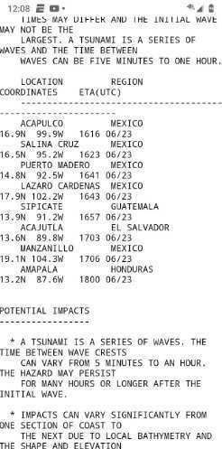È stato lanciato un allarme tsunami in quattro Paesi: Messico , Guatemala , El Salvador e Honduras.  Rientrato dopo alcune ore.