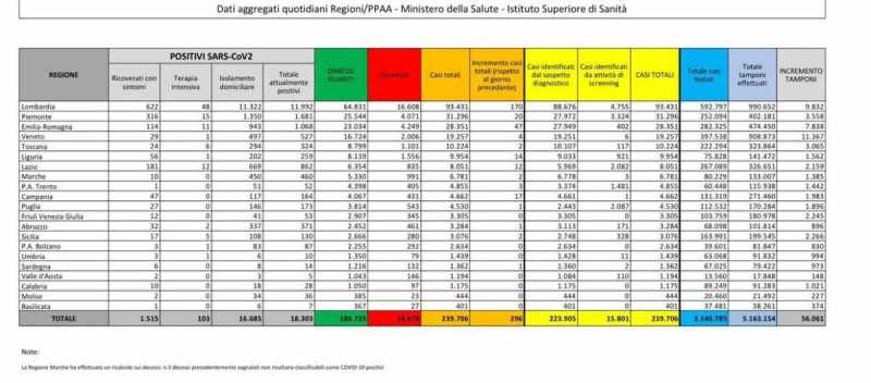 Cala invece il numero dei ricoverati in terapia intensiva: sono 103, contro i 107 di ieri. I guariti sono stati 614 mentre le nuove vittime 34.