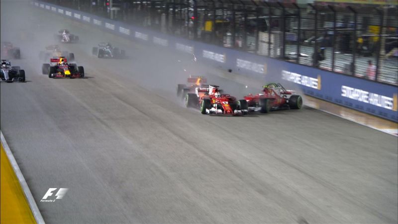 LAP 1/61: A huge hole in the side of VET's car, he's out too! #SingaporeGP ?? #F1 pic.twitter.com/Xy1WDEAP5w
