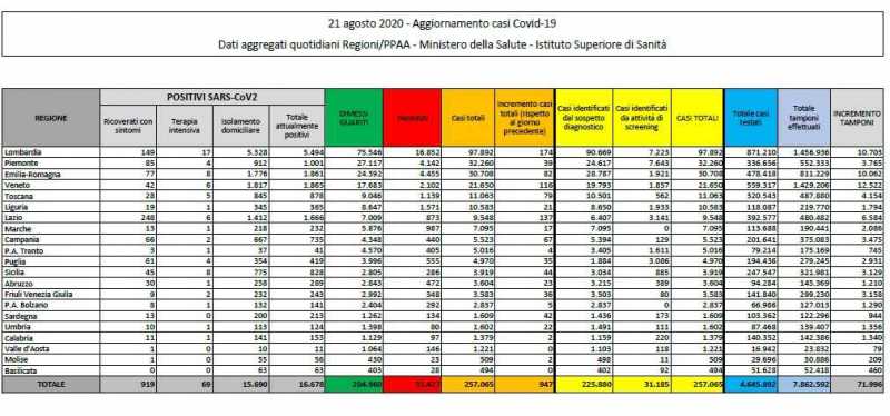 La Lombardia resta la regione con il maggior numero di casi: 174, seguita dal Veneto con 116. Quarantadue quelli sardi.