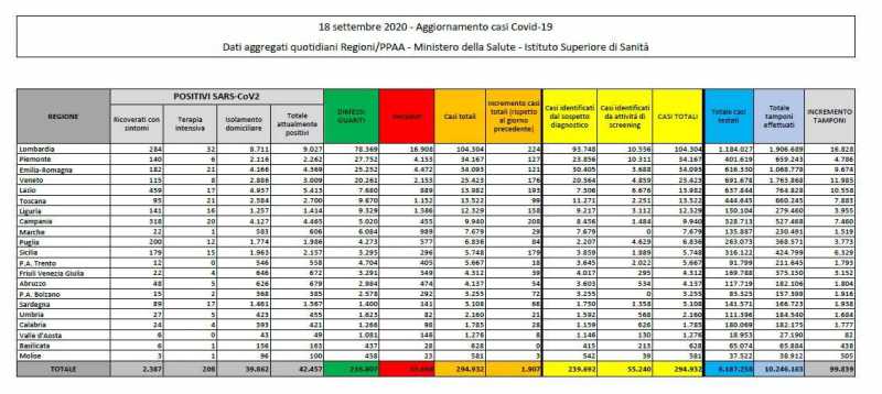 A registrare l'incremento maggiore è la Lombardia con 224 nuovi casi di coronavirus. Seguono la Campania (208), Lazio (193), Sicilia (179) e Veneto (176).
