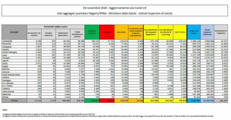 I guariti sono 6.258. E si contano 182,287 tamponi. Il tasso di positività ha registrato un calo dello 0,9% (oggi è al 15,5%).