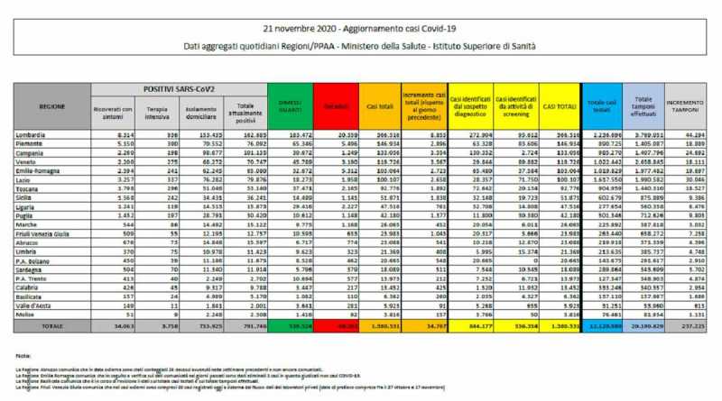 Sono stati eseguiti 237.225 tamponi, e l'indice di positività ha registrato un calo dell'1%: è al 14,7%.