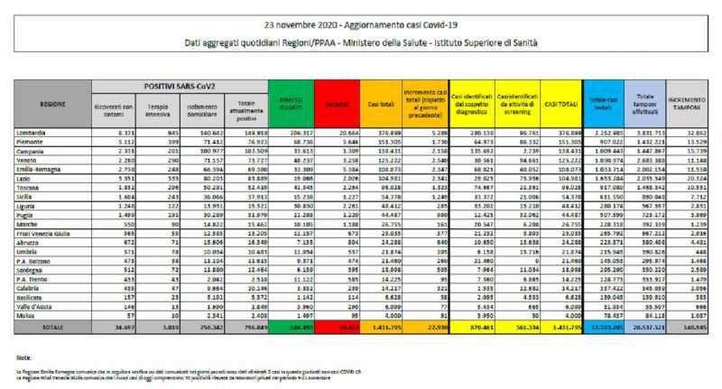 ROMA. In Italia, individuati 22.930 nuovi positivi su 148.945 tamponi effettuati. Il tasso di positività è al 15,4% (più o,4% rispetto a ieri). E resta alto il numero delle vittime: 630 decessi in 24 ore. Negli ospedali italiani sono stati ricoverati altri 418 pazienti nei reparti non intensivi (34.697 i letti attualmente occupati) e 9 in terapia intensiva (3.810 il numero complessivo dei pazienti gravi). Sono 31.395 i negativizzati.