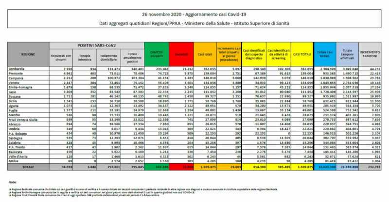 ROMA. Resta alto il numero dei decessi in Italia: 822 nelle ultime 24 ore. I contagiati sono stati 29.003, con 232.711 tamponi eseguiti. Il tasso di positività registra un più 1,2%, salendo al 12,5%.