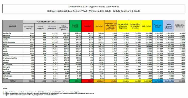 I guariti, oggi, superano i nuovi casi: 35.467 negativizzati e 28.352 contagi. I tamponi processati sono 222.803, e il tasso di positività è salito dello 0,3%, attestandosi al 12,7%.