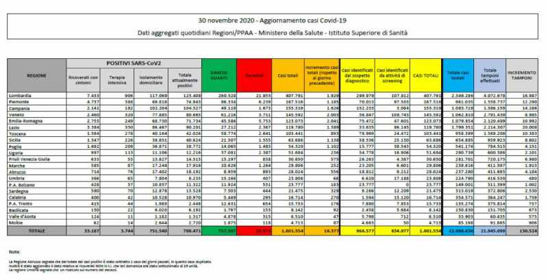 A guidare la triste classifica delle regioni per contagi è ancora la Lombardia che, anche per effetto del lockdown, è scesa sotto 2000 nuove positività quotidiane.