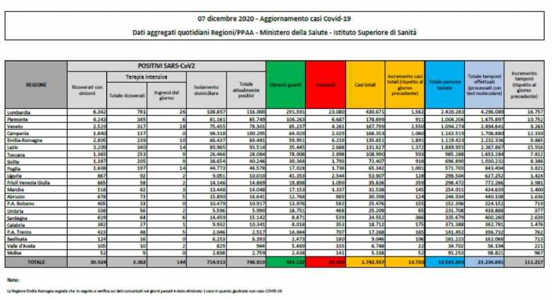 ROMA. In Italia si contano 13.720 contagiati, su 111.217 tamponi effettuati. Il tasso di positività è salito dello 0,8%, attestandosi al 12.3%. E sale la curva dei ricoveri nei reparti ordinari, dove si trovano 133 pazienti in più rispetto a ieri. Meno 72 è invece il dato delle terapie intensive, dove si sono contati 144 "ingressi del giorno". Sono 528 i decessi.