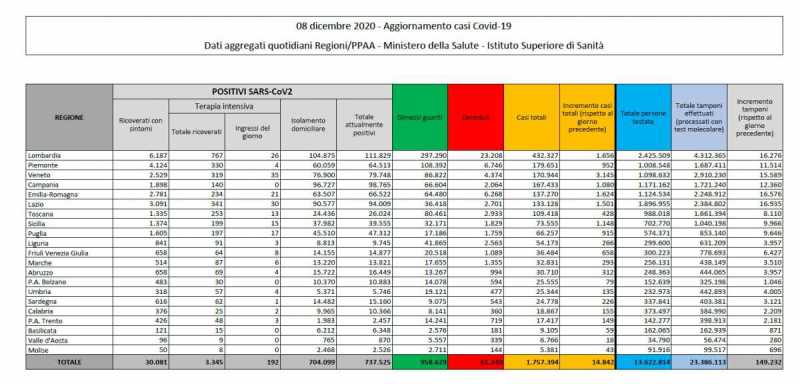 L'incremento maggiore di casi si registra in Veneto, sopra quota 3100 (a fronte di oltre 15mila tamponi).
