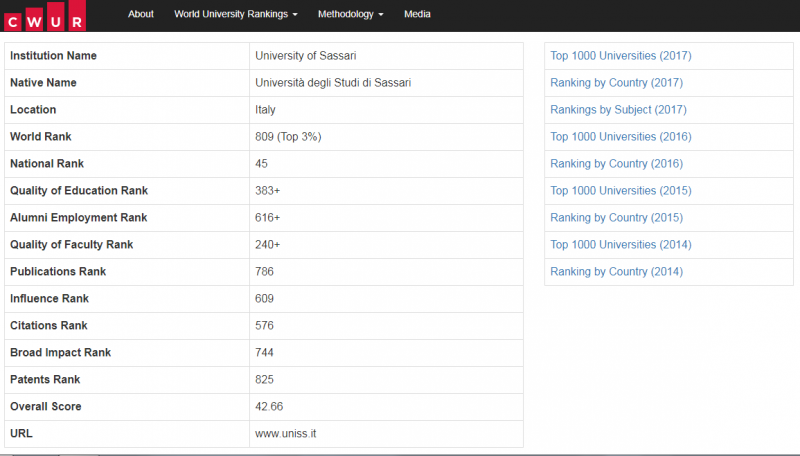 Tra gli Atenei sardi, Cagliari – 556ma lo scorso anno – perde sei posizioni e si piazza a quota 562, mentre Sassari ne guadagna due, salendo da 811 a 809. Per stilare questa speciale graduatoria, il Cwur ha valutato 27.770 università del pianeta, classificate sulla base di otto indicatori che vanno dalla qualità della pubblica istruzione a quella della docenza, passando per il tasso di occupazione degli ex studenti e le pubblicazioni.