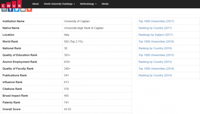 CAGLIARI. Cagliari al 562mo posto della classifica delle Università mondiali, Sassari in posizione 809. A certificarlo è la graduatoria 2017 elaborata dal Cwur (Center for World University Ranking), il centro per i ranking internazionali di Ras Al Khaimah (Emirati Arabi). Nella classifica di quest’anno, che elenca i primi mille atenei al Mondo, le Università italiane non brillano: per trovare la prima italiana - la Sapienza di Roma, in salita di sei posizioni - bisogna arrivare fino all’84mo posto. Nel podio italiano al secondo posto si piazza Padova - al centosessantaquattresima, con uno scivolone di sette posizioni - e la Statale di Milano, che guadagna due posizioni rispetto allo scorso anno e si piazza al 169mo posto.
