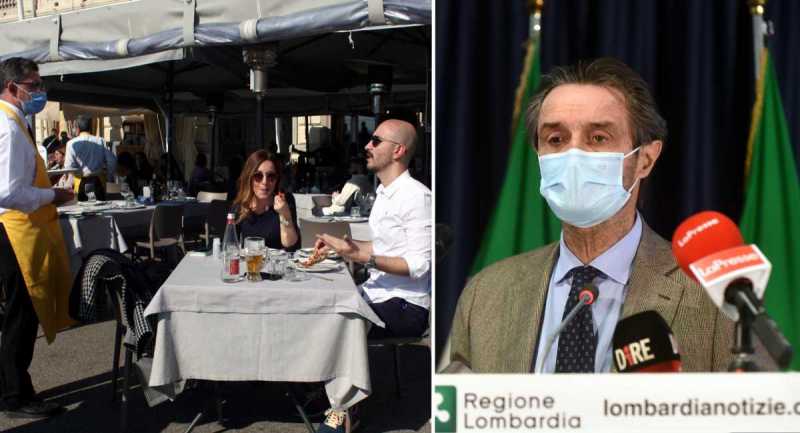 "Non c'è nulla di male ad aprire i ristoranti anche la sera", commenta Fontana, "se si rispettano le regole e tutte le linee di condotta. Molto meglio quattro persone che cenano sedute a un tavolo distanziate, che gli assembramenti che abbiamo visto domenica davanti allo stadio di San Siro o la sera fuori dai bar".