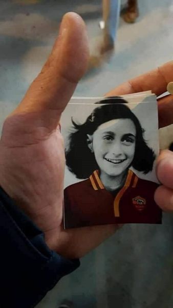 Anna Frank con la maglia della Roma: fotomontaggio choc distribuito durante Lazio-Cagliari