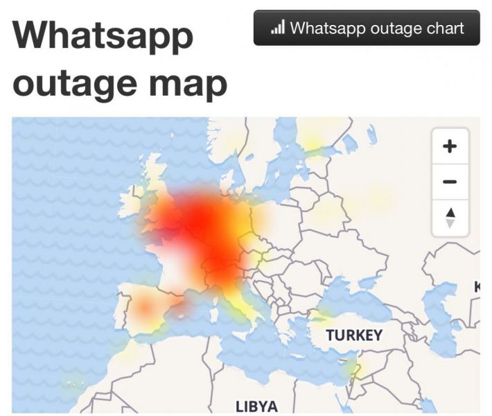 Whatsapp, blackout di un'ora in mezza Europa: ecco la mappa dei disservizi dell'applicazione