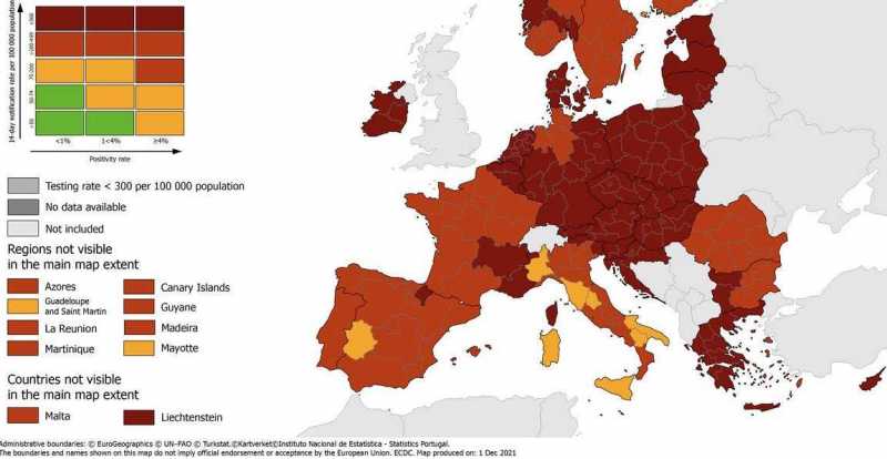 CAGLIARI. Solo Italia e Spagna, nell'Unione europea, sono gialle, quindi a rischio ancora non elevato di contagio. Tutti gli altri Paesi sono rossi o rosso scuri. È quanto mostra la mappa aggiornata dell'Ecdc, il Centro europeo per la prevenzione e il controllo delle malattie. Per quanto riguarda l'Italia sono gialle Piemonte, Toscana, Umbria, Puglia, Basilicata, Sicilia e Sardegna. Le restanti Regioni sono rosse, nessuna in rosso scuro. In Spagna solo una regione mantiene il colore giallo: l'Estremadura. La massima incidenza dei contagi, secondo l'Ecdc si concentra in Germania, Benelux, Irlanda, Grecia e nell'Europa dell'Est.