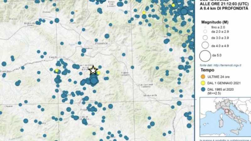 FIRENZE. Una nuova scossa di terremoto si è verificata a Firenze. L'epicentro è stato registrato a 3 km a sudovest di Impruneta, a 8 km di profondità.
