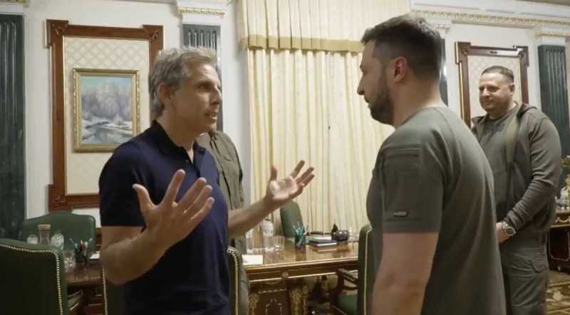 KIEV. L'attore americano Ben Stiller è arrivato in Ucraina e oggi a Kiev ha incontrato il presidente Volodymyr Zelensky. "Sei il mio eroe", ha detto la star di Hollywood al leader ucraino, quando è arrivato nel palazzo presidenziale.