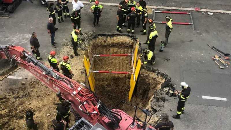 Stando a quanto si apprende, il canale sotterraneo partiva da un negozio sfitto della zona. Nelle vicinanze ci sono due banche, ma distano almeno un centinaio di metri dal punto del cedimento.