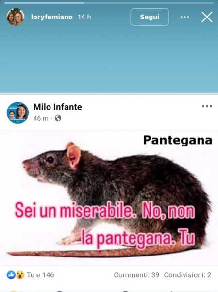 In serata, la madre di Giulia, Loredana Femiano, ha risposto ricondividendo su Instagram una storia pubblicata dal giornalista Milo Infante che mostrava un topo, accompagnata dalla scritta: "Sei un miserabile. No, non la pantegana. Tu".