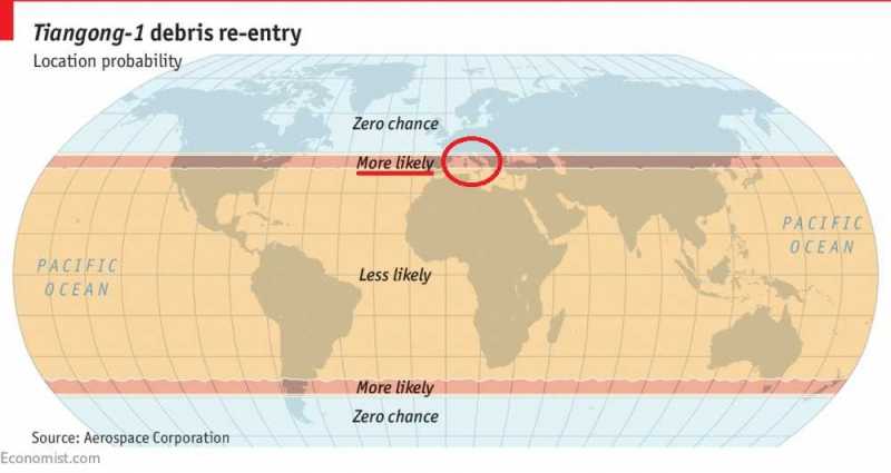 CAGLIARI. La Sardegna come il Nord della Spagna, il lago Michigan, l’isola di Hokkaido e Vladivostok. Cos’hanno in comune tutti questi luoghi? Sono tutti lungo la traiettoria della possibile caduta di parti della stazione spaziale cinese Tiangong-1, che al momento si trova a circa 250 chilometri di altezza e dal 2016 non risponde ai comandi da terra. Secondo quanto riportato dall’Economist - che riprende uno studio della Aerospace Corporation (QUI LA NOTIZIA) - non è possibile calcolare con certezza la traiettoria esatta, ma l’area interessata è quella del 43° parallelo Nord, che comprende anche la Sardegna, oppure quella del 43° parallelo Sud, nell’emisfero australe. L’Agenzia spaziale europea avrebbe previsto come periodo dell’eventuale caduta di Tiangong-1 – la cui missione nello spazio è terminata nel 2016 – tra il 29 marzo e il 9 aprile.