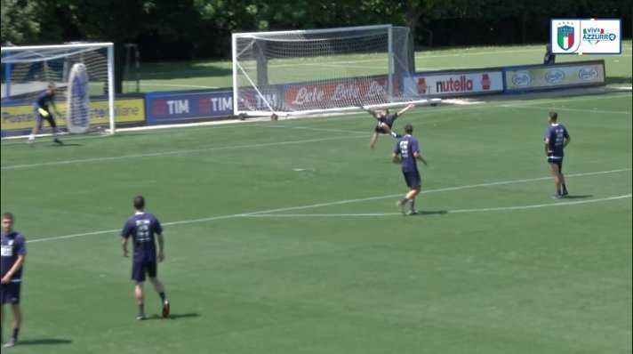 È un numero da maestri quello che Nicolò Barella, ventiduenne centrocampista del Cagliari, ha mostrato ai suoi compagni di squadra durante l'ultimo allenamento con la Nazionale. In vista della partita di qualificazione per le europee, Italia-Grecia, di sabato 8 giugno alle 20,45 gli azzurri si stanno allenando intensivamente. Ma dopo la sforbiciata del sardo, anche i compagni di squadra si sono presi una pausa, quasi increduli per ciò che avevano visto.