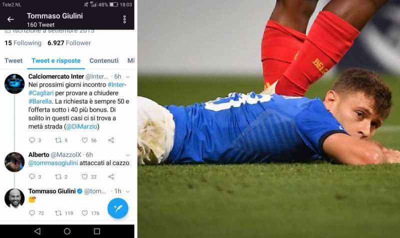 CAGLIARI. Un account legato a un sito che si occupa di notizie sull'Inter riporta il punto sulle trattative per la cessione del rossoblù (per ora) Nicolò Barella. Tra i commenti spunta un insulto per il presidente del Cagliari Tommaso Giulini, che decide di rispondere. Un emoticon, con un bacio. Va di moda, adesso.