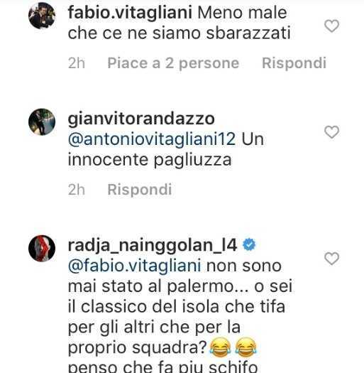 I tifosi delle varie squadre si dividono. La vita mondana di Radja fuori dal campo è nota. C'è chi lo critica e chi sottolinea che, davvero, non c'è niente di male. Solo che a un certo punto compare il commento di un ragazzo di Palermo, tifoso dell'Inter: "Meno male che ce ne siamo sbarazzati”. Il Ninja gli analizza il profilo, e replica come raccogliendo un assista a porta vuota: "“Non sono mai stato al Palermo. O sei il classico siciliano che tifa per altre squadre piuttosto che per quella della sua città? Penso che faccia più schifo questo, no?”