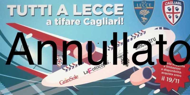 Quattro imprenditori cagliaritani avevano sponsorizzato l'iniziativa che, al costo di 299 euro, prevedeva andata e ritorno per Brindisi in giornata (con volo di rientro a tarda notte), trasferimento in pullman a Lecce e biglietto per lo stadio. Uno di loro, Danilo Argiolas, proprietario del Libarium, annuncia l'annullamento del'iniziativa: "Tanto è vero che l’amore non si compra, quanto è vero che si dimostra", spiega, "Un immenso grazie ai 55 passionali che hanno investito soldi e sogni per condividere con noi una giornata di sport e di festa".