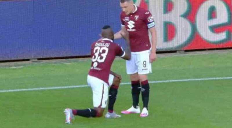 TORINO. In ginocchio con il pugno stretto per ricordare George Floyd: così il giocatore del Torino N'Koulou ha ricordato l'afroamericano morto a Minneapolis circa un mese fa. Autore del gol del vantaggio granata alla ripresa del campionato, N'Koulou dopo essere stato festeggiato dai compagni si è inginocchiato.