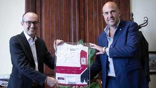 CAGLIARI. Il presidente Giulini ha regalato la maglia del centenario alla città di Cagliari.