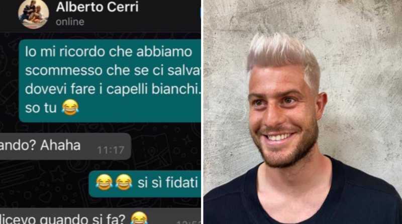 CAGLIARI. "Mi tingo i capelli di bianco se ci salviamo". Salvezza conquistata, promessa mantenuta. L'attaccante rossoblù Alberto Cerri sfoggia un nuovo "hairstyle", frutto della scommessa fatta con il suo parrucchiere di fiducia, Matteo, prima di conoscere le sorti del Cagliari. A pubblicare le foto "La Bottega dello Stile", dove il giocatore ha cambiato il colore dei suoi capelli. "Una scommessa è una scommessa", scrivono loro, "Glielo abbiamo dovuto ricordare ma alla fine ecco la spiegazione del suo nuovo look"