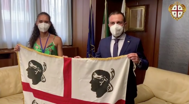 Pais ha consegnato questa mattina la bandiera della Sardegna alla giovane atleta, neo campionessa dei 200 metri ai recenti campionati europei che si svolti a Tallinn all’inizio del mese. “ Sono certo – ha detto il Presidente Pais – che la nostra delegazione saprà tenere alto l’onore della Sardegna. Anche nello sport la nostra isola si è sempre contraddistinta, oltre che per i risultati, per lo spirito sportivo, la sana competitività, il senso di appartenenza. Siamo fieri di voi”. Dalia è molto motivata: “Partirò domenica e porterò con me la nostra bandiera. Sono fiera e orgogliosa di partecipare alle Olimpiadi - ha detto la velocista delle Fiamme Oro al Presidente Pais - è il sogno di ogni atleta”.