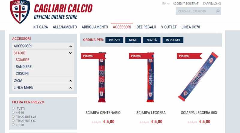 CAGLIARI. La società di Tommaso Giulini vuole un fortino con una bolgia rossoblù per la sfida di domani sera alle 20,45 tra Cagliari e Inter. Online e negli store ha deciso di ribassare i prezzi di tutte le sciarpe, che vengono cedute a soli cinque euro con un'offerta promozionale.