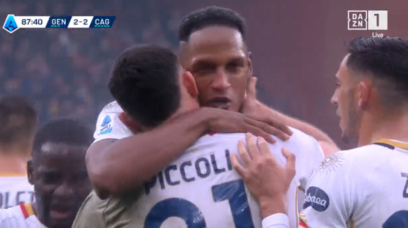 Il Genoa pareggia subito. All’11’. Frendrup sorprende tutti in area, sugli sviluppi di un fallo laterale, incrocia di sinistro e segna il gol del pari.