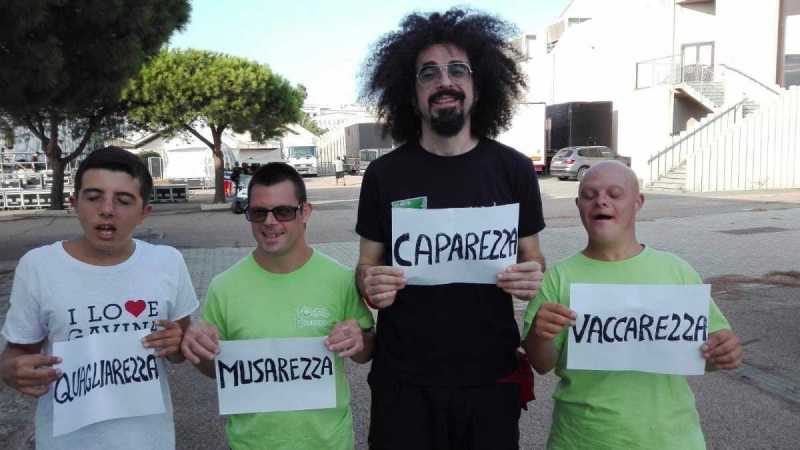 CAGLIARI. Caparezza è tornato in Sardegna per il concerto estivo alla Fiera di Cagliari. Ma ieri, prima di salire sul palco, ha incontrato gli atleti speciali della polisportiva Olimpia Onlus. Abbracci, qualche foto e anche un'idea simpatica per i giovani ragazzi: trasformare il loro cognome alla "Caparezza". Ed ecco che Roberto Musa è diventato "Musarezza", Alessandro Vacca "Vaccarezza" e Davide Quaglieri "Quagliarezza".