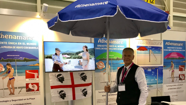 L'ombrellone di Cavagnino può essere piazzato con facilità da anziani, disabili e bambini dall'ottavo anno di età. Il sistema si chiama Athenamare. Al posto della pericolosa punta (le cronache raccontano di più di una persona infilzata, qui un episodio accaduto a Cagliari, con una donna che ha perso un occhio) c'è una piccola elica piatta che favorisce l'inserimento, attraverso una leva posta sul bastone che blocca in sicurezza anche la parte superiore. E se la tela si usura? Si può sostituire con facilità. La comodità in riva al mare passa da un'idea all'apparenza semplice, ma vincente.