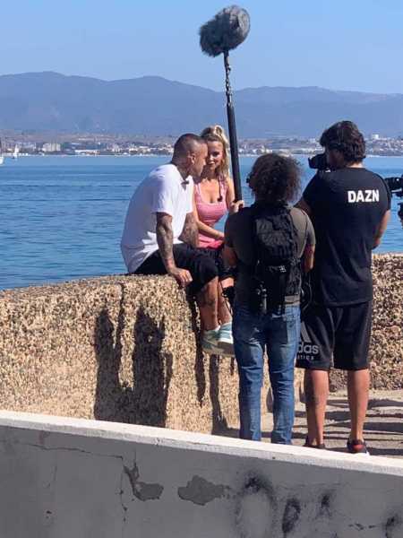 La Leotta è stata poi immortalata in compagnia del centrocampista del Cagliari, Radja Nainggolan. I due passeggiano a Marina Piccola, durante un'intervista per Dazn.