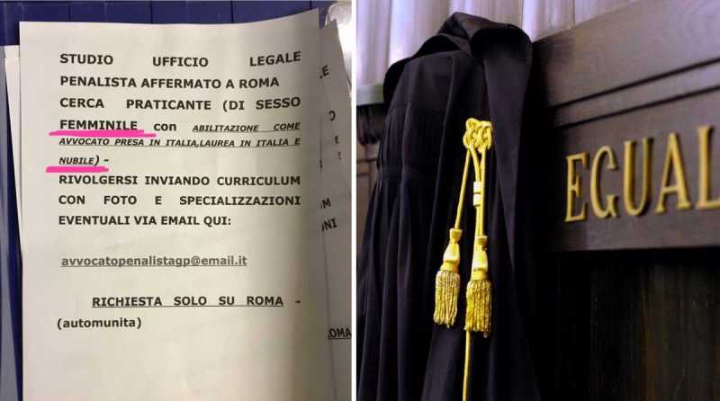 ROMA. Sei avvocato e cerchi lavoro in uno studio legale? C'è una chance per te. Unica condizione per la candidatura? Devi essere donna e, soprattutto, non sposata. Sta facendo già discutere sul web un annuncio di lavoro esposto alla Corte di Cassazione a Roma per il posto di "praticante" in un ufficio legale penalista. Nel foglio si legge chiaramente che si cerca una persona "di sesso femminile, con abilitazione di avvocato e nubile". Al curriculum, poi, bisogna allegare obbligatoriamente una foto, come se fosse un requisito necessario per esercitare la professione. Foto sì, e anche "specializzazioni eventuali", per dare una parvenza di importanza anche al merito. Di annunci così, forse, nel 2019, se ne vedono ancora solo nei pub notturni o simili. Ma neanche lì, a dire il vero, ormai l'essere nubile o bella sembra essere una condizione limitante.